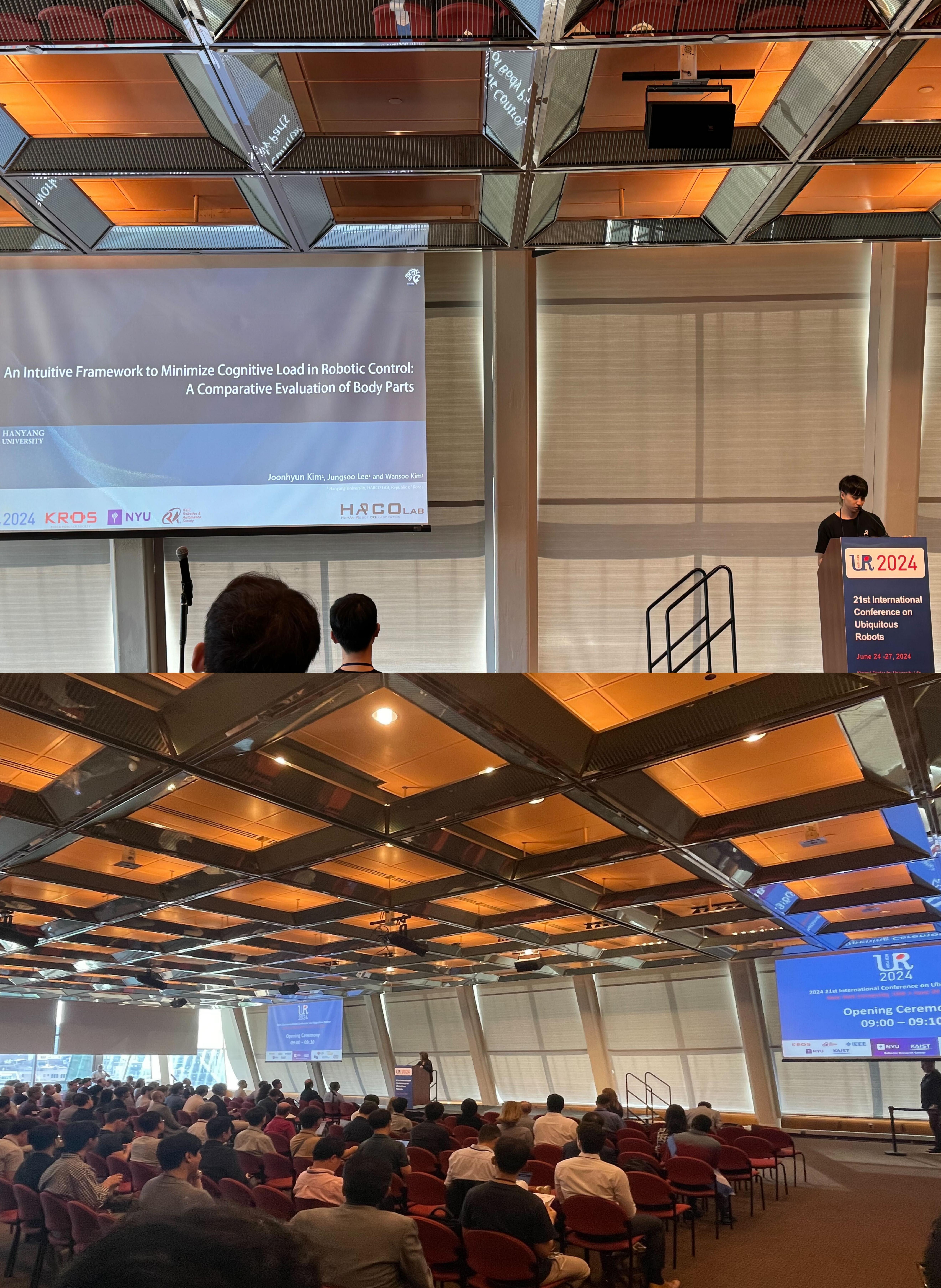 At IEEE UR 2024 Conference (New York University, US), Joonhyun Kim made a oral presentation on “An Intuitive Framework to Minimize Cognitive Load in Robotic Control: A Comparative Evaluation of Body Parts” by J.H. Kim , J.S. Lee and W. Kim et al.