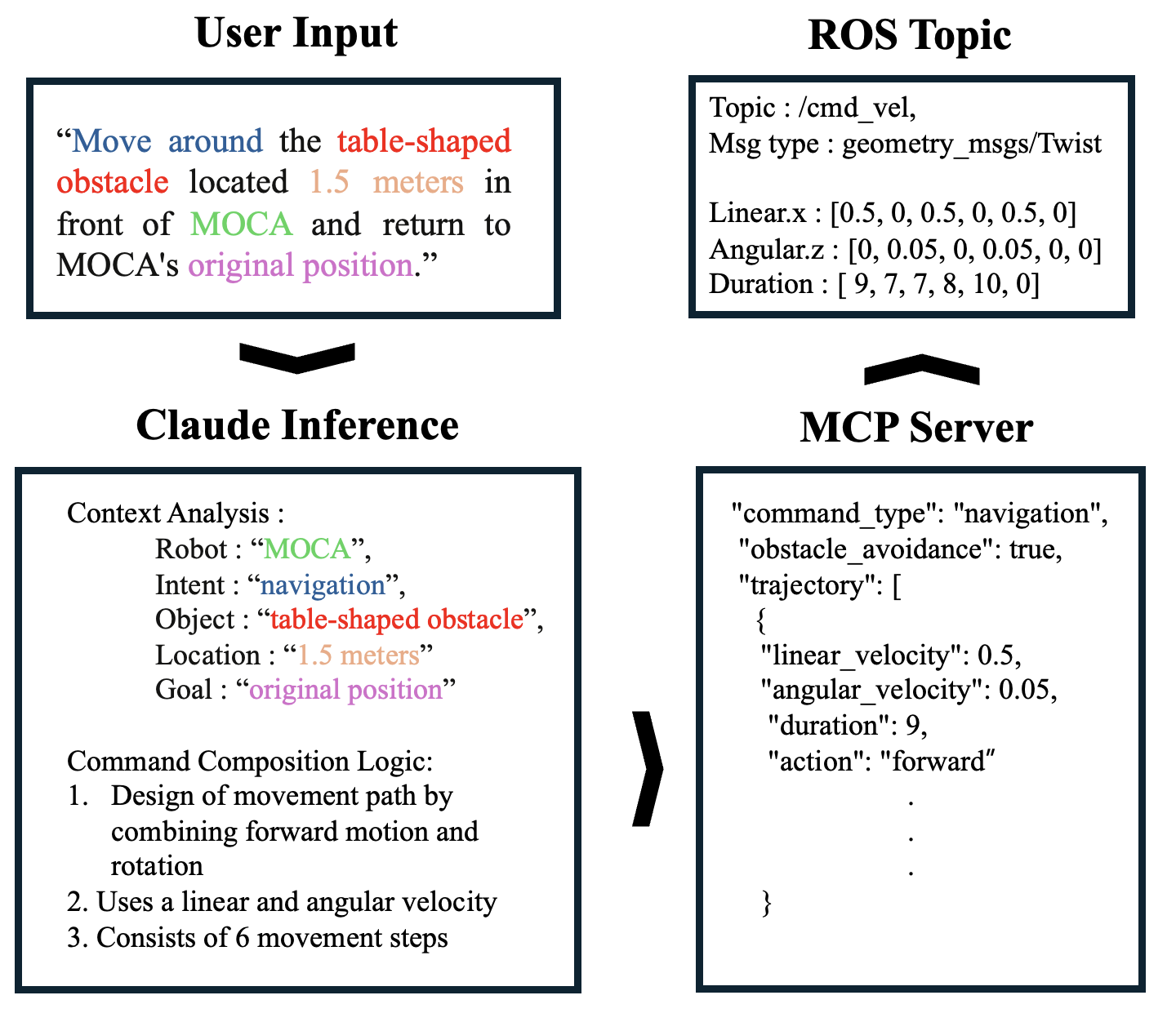 Goal The objective of this study is to propose an efficient and generalizable robot control framework that transforms natural language commands into structured MCP messages, enabling clear, consistent, and scalable control across diverse robot platforms. ***