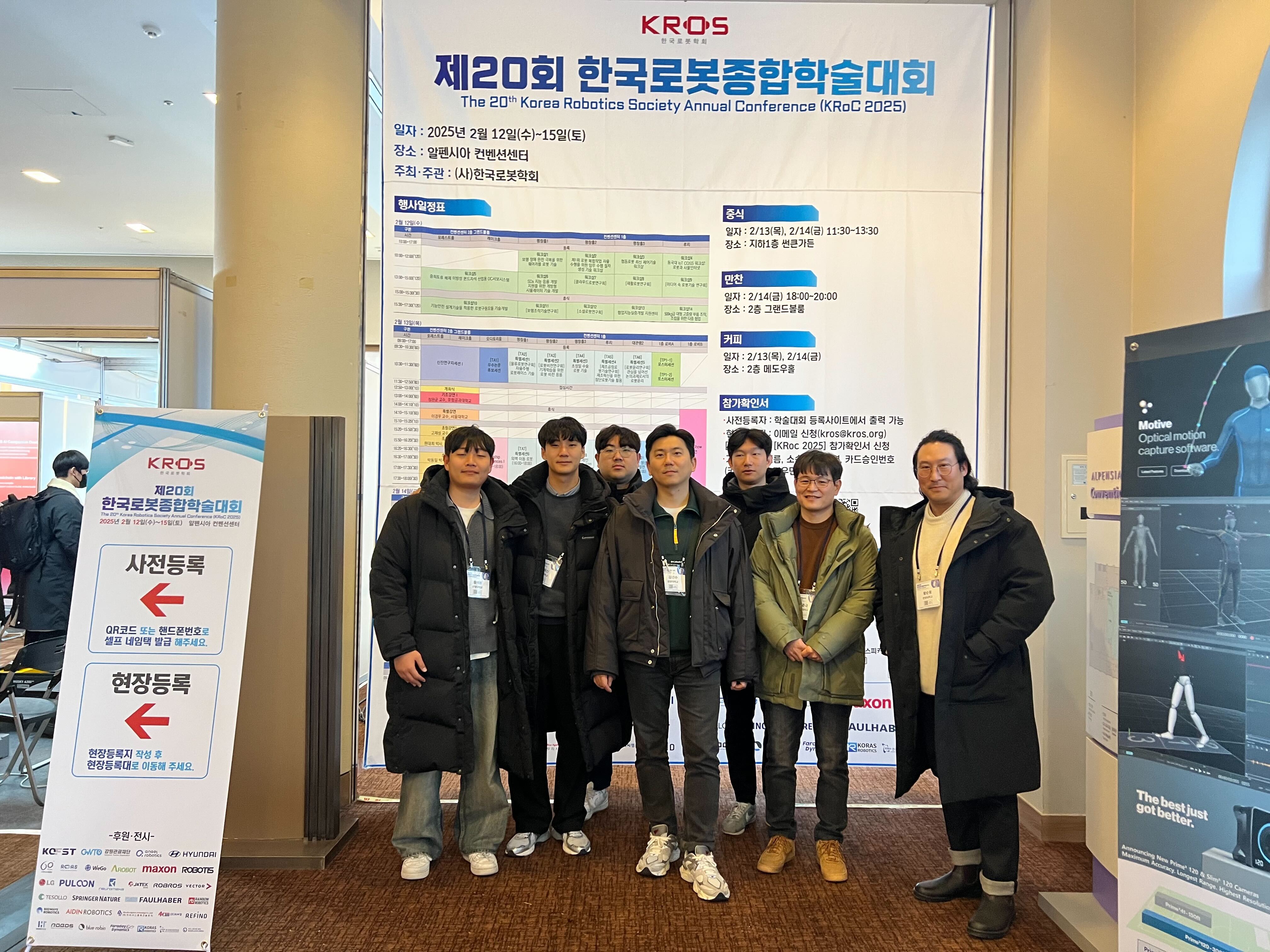 Seongmin-Ha, Jaepil-Jang, Yusin-Choi, Seokhwan-Hwan, Joonkyu-No, Soonwoong-Hwang and Professor Wansoo Kim attended the KRoC 2025 Conference.