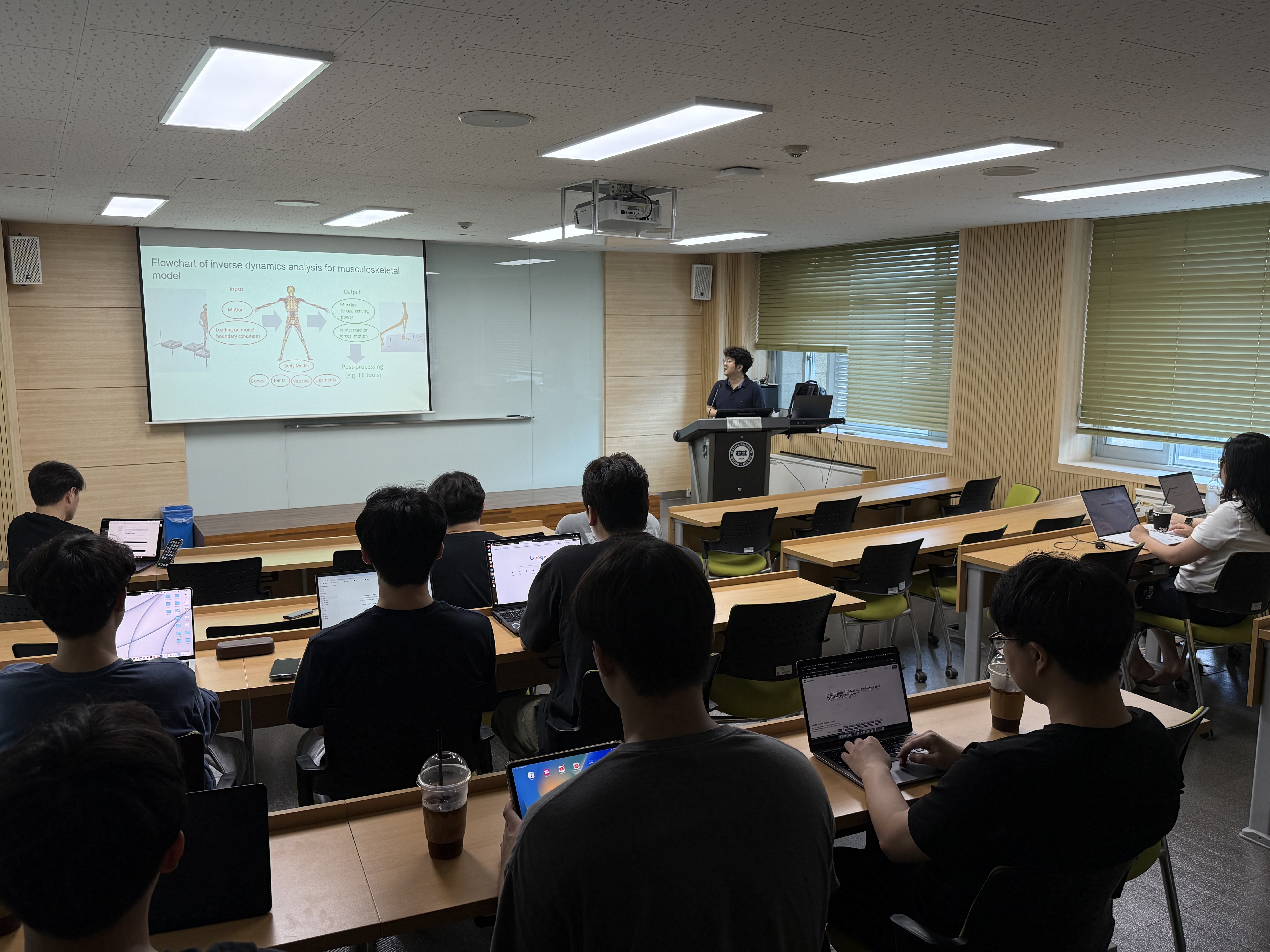 In his lecture, Prof. Jung introduced the fundamentals of computational musculoskeletal biomechanics, focusing on how inverse dynamics and subject-specific modeling can be used to analyze human movement and estimate muscle forces. He explained how MRI-based musculoskeletal models and validation studies, such as Orthoload, provide reliable frameworks for orthopedic and rehabilitation research.