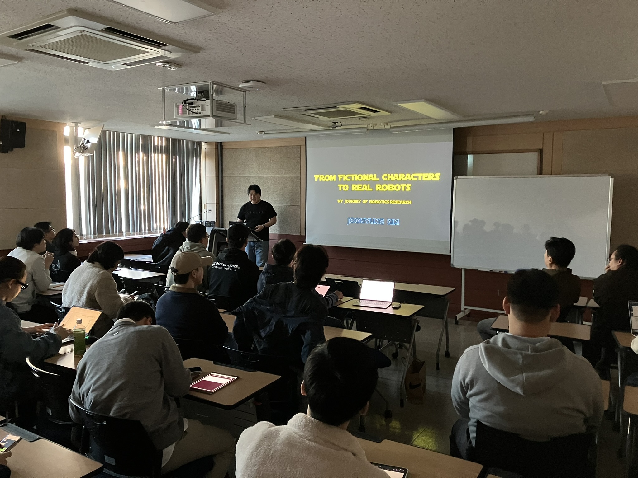In this seminar, Prof. Kim reflected on how the robot characters he admired in science fiction—spanning movies, animations, comics, and games—inspired his lifelong research direction as a robotics scientist. He shared the personal and technical journey from early imagination to real robotic system development, emphasizing how fictional depictions sparked curiosity, creativity, and long-term vision.